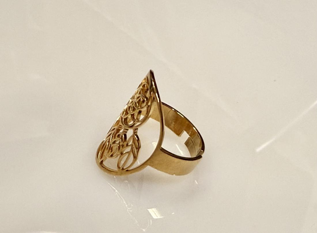 Laissez-vous séduire par la douceur et la symbolique de la bague “Attrape-Rêves Harmonie”. Son design ajouré, inspiré de l’attrape-rêves traditionnel, allie élégance et spiritualité : la fleur centrale évoque l’éveil et la connexion à soi, tandis que les plumes stylisées rappellent la légèreté et la protection contre les énergies négatives. Réalisée en acier inoxydable plaqué or, cette bague réglable s’adapte à toutes les morphologies et se porte comme un véritable talisman au quotidien.