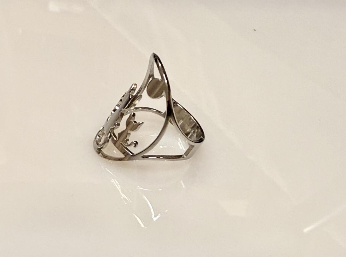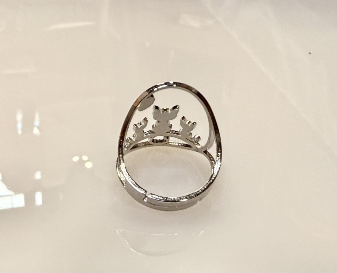 Laissez-vous charmer par la bague “Complicité Féline”, une création délicate en acier inoxydable mettant en scène trois adorables chats contemplant la lune. Ce bijou original symbolise la douceur, la complicité et l’harmonie avec le monde animal. Son design ajouré apporte une touche de légèreté et de poésie à votre main, tout en reflétant votre amour pour les chats et votre recherche de bien-être.