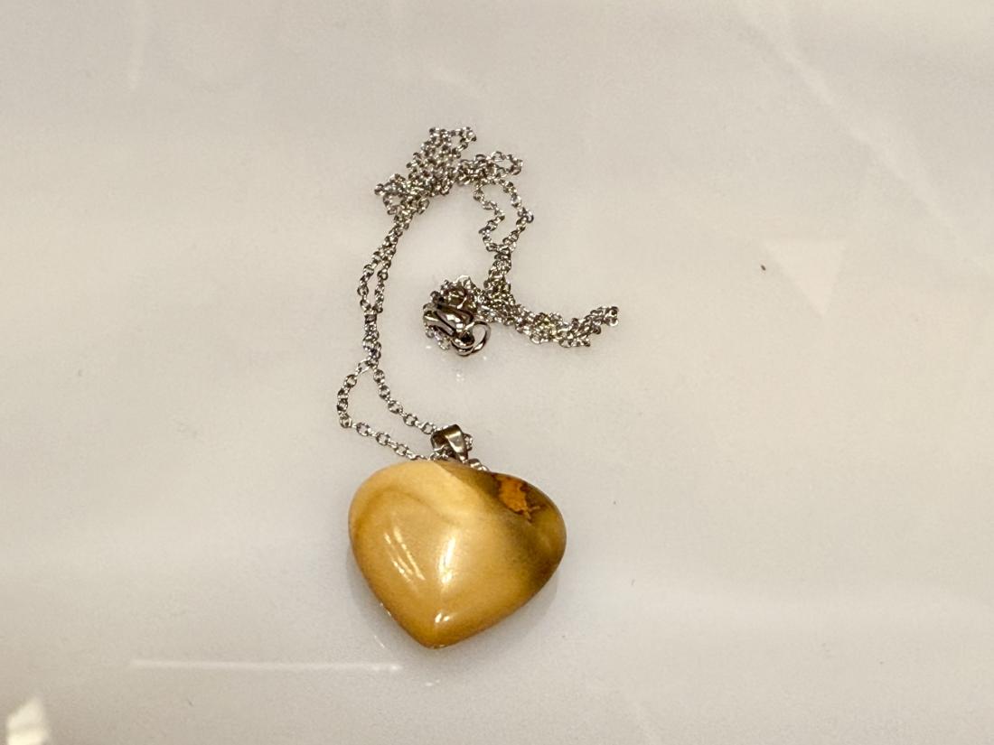 • Pendentif cœur en pierre naturelle aux tons dorés, symbole de chaleur et de vitalité